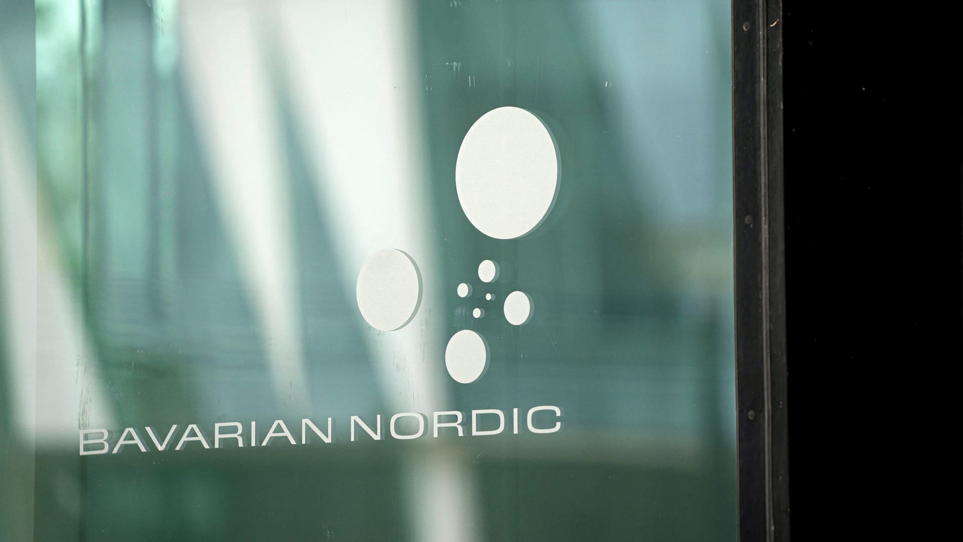 A photo shows the company’s logo on the headquarters of Danish biotechnology company Bavarian Nordic in Hellerup, north of Copenhagen.