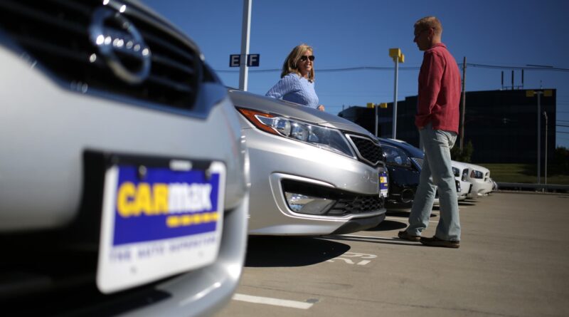 Customers shop for used vehicles at a CarMax dealership in Lexington, Kentucky.