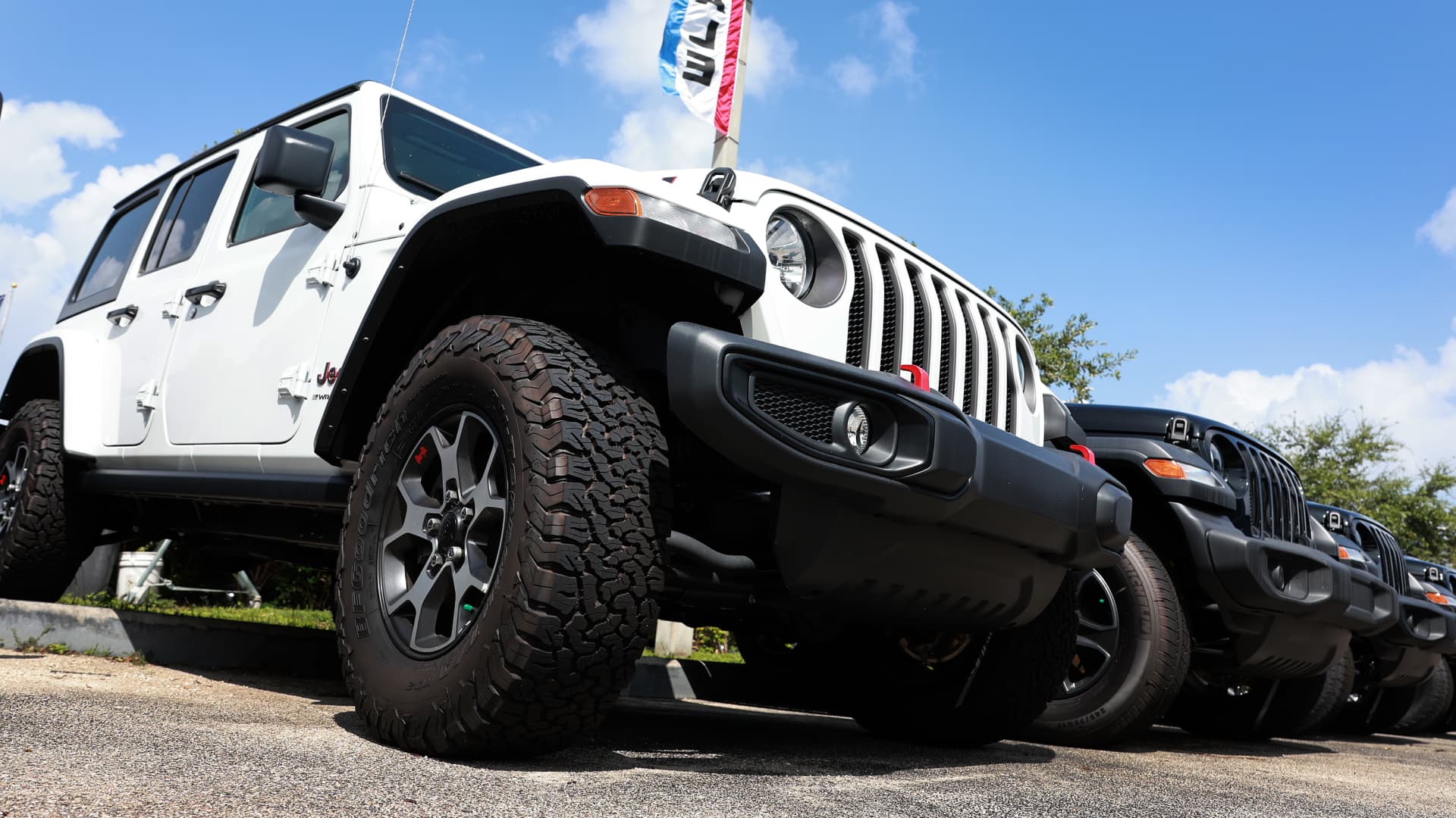 New Jeep vehicles sit on a Dodge Chrysler-Jeep Ram dealership’s lot on October 03, 2023 in Miami, Florida.