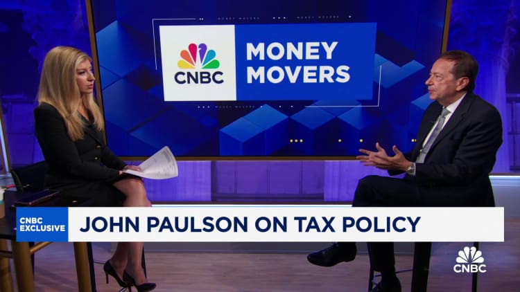 “They want to raise the corporate tax rate from 21 to 28%, they want to raise the capital gains tax from 20% to 39% and then they want to add a tax on unrealized capital gains of 25%,” Paulson said in an interview on CNBC’s “Money Movers” on Friday with Sara Eisen. “I think if they implement those policies, we’ll see a crash in the markets, no question about it.”