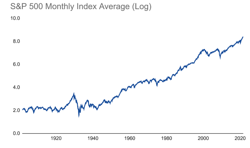 The chart above tracks the S&P 500 over many decades. The downturns you see are periods that felt terrifying at the time: