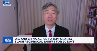 U.S. President Donald Trump is displayed on a television screen as traders work on the floor of the New York Stock Exchange (NYSE) on April 7, 2025 in New York City.